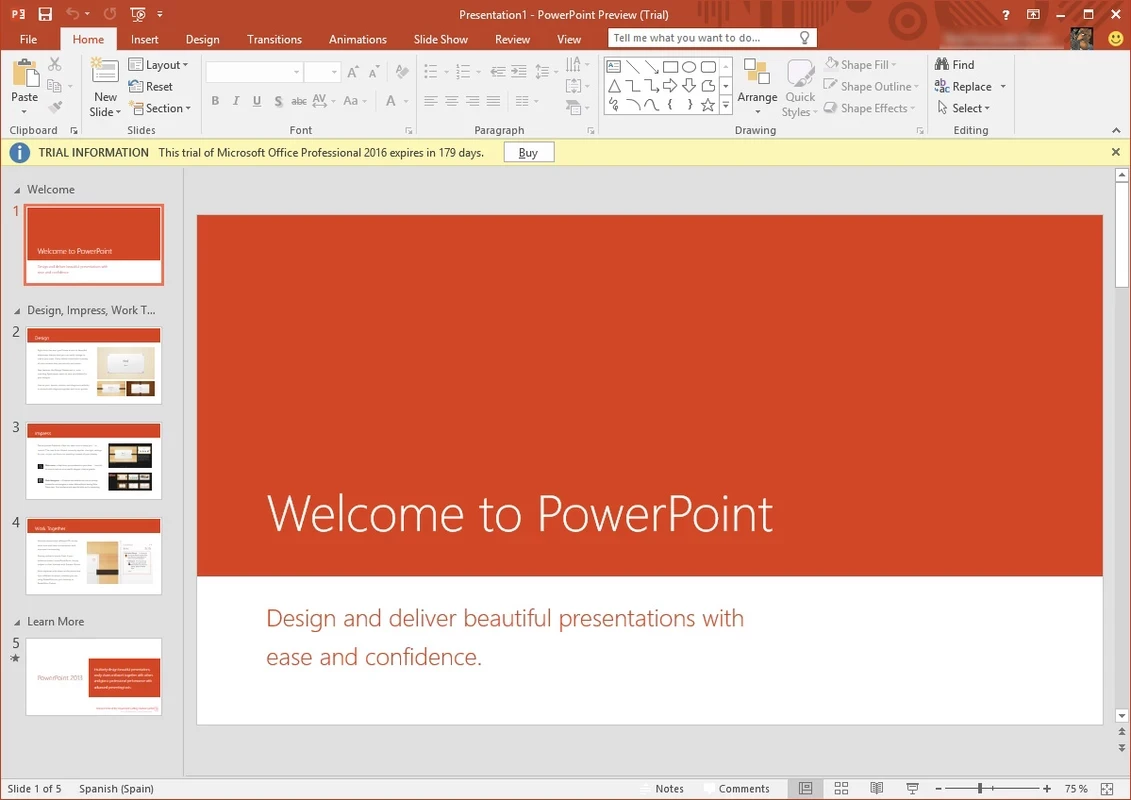 Uma interface suave e fácil de usar para desktops oferece muitas melhorias visuais em comparação com o Office 2013. Você precisa se conectar à internet para executar vários recursos e obter funcionalidades aprimoradas.